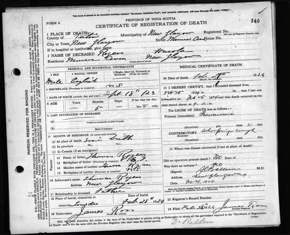 Death Registration: Year: 1924 file: 99 number: 840