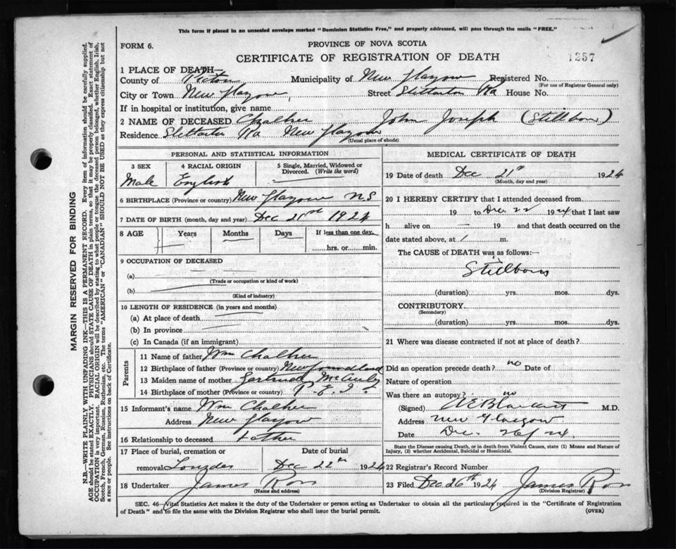 Male Death Registration: Year: 1924 file: 99 number: 1257