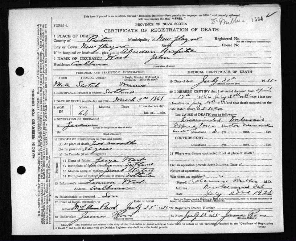 Death Registration: Year: 1925 file: 99 number: 1554