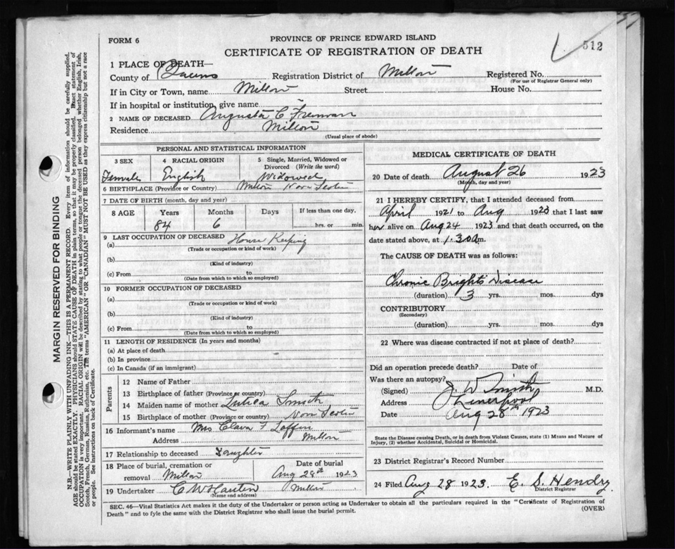 Death Registration: Year: 1923 file: 101 number: 512