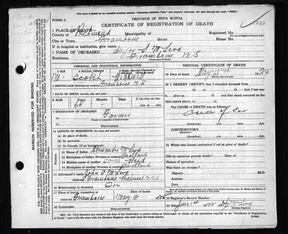 Nova Scotia Archives — https://archives.novascotia.ca/vital-statistics/death/?ID=205020