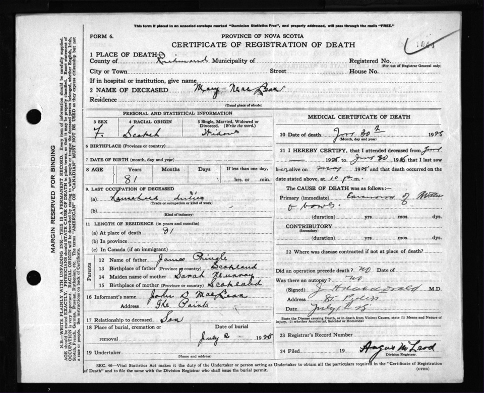 Nova Scotia Archives — https://archives.novascotia.ca/vital-statistics/death/?ID=205025