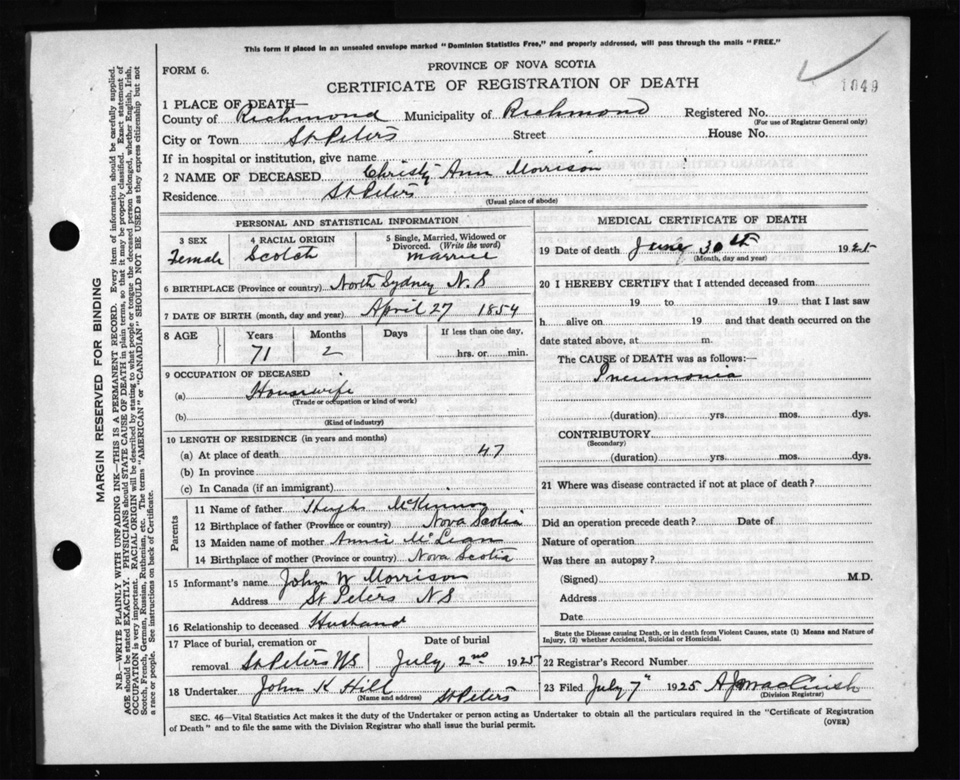 Nova Scotia Archives — https://archives.novascotia.ca/vital-statistics/death/?ID=205030