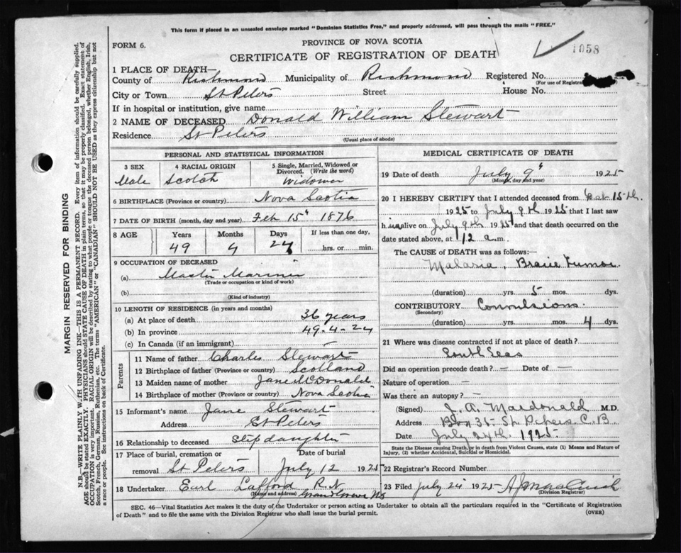 Nova Scotia Archives — https://archives.novascotia.ca/vital-statistics/death/?ID=205039