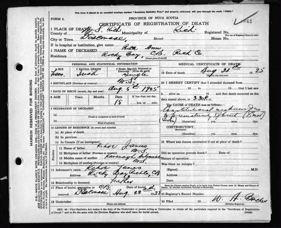 Nova Scotia Archives — https://archives.novascotia.ca/vital-statistics/death/?ID=205046