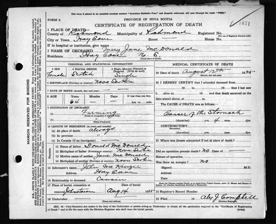 Nova Scotia Archives — https://archives.novascotia.ca/vital-statistics/death/?ID=205052