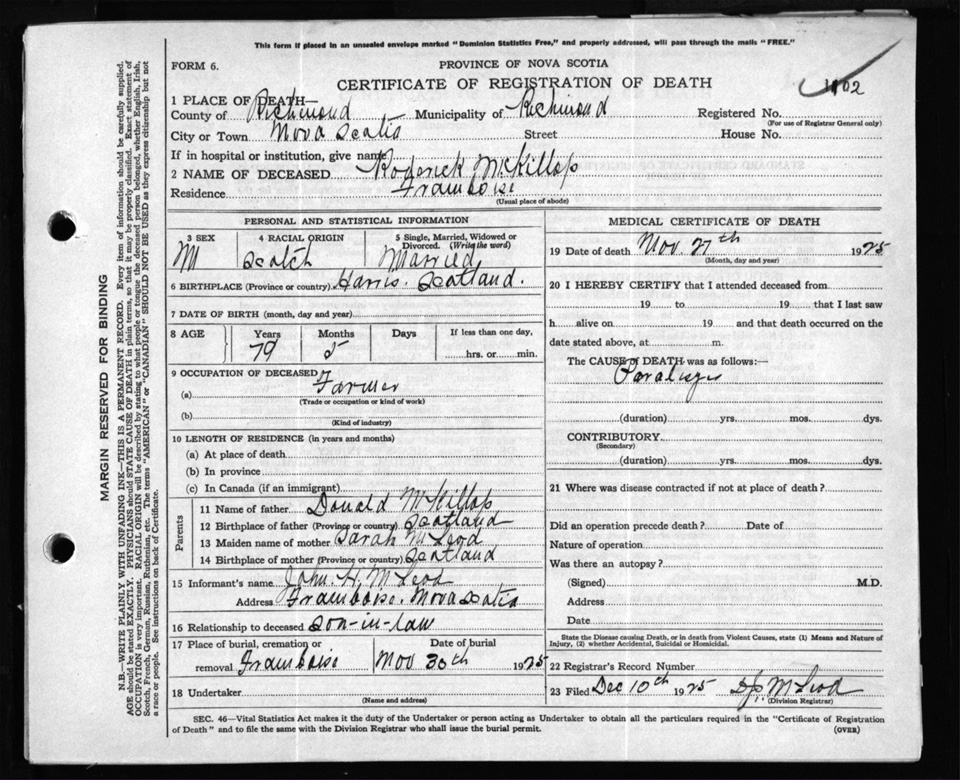 Nova Scotia Archives — https://archives.novascotia.ca/vital-statistics/death/?ID=205083