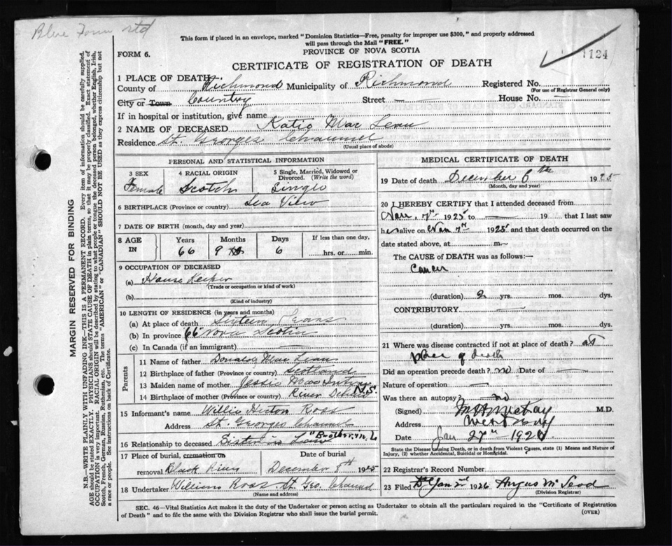 Nova Scotia Archives — https://archives.novascotia.ca/vital-statistics/death/?ID=205105