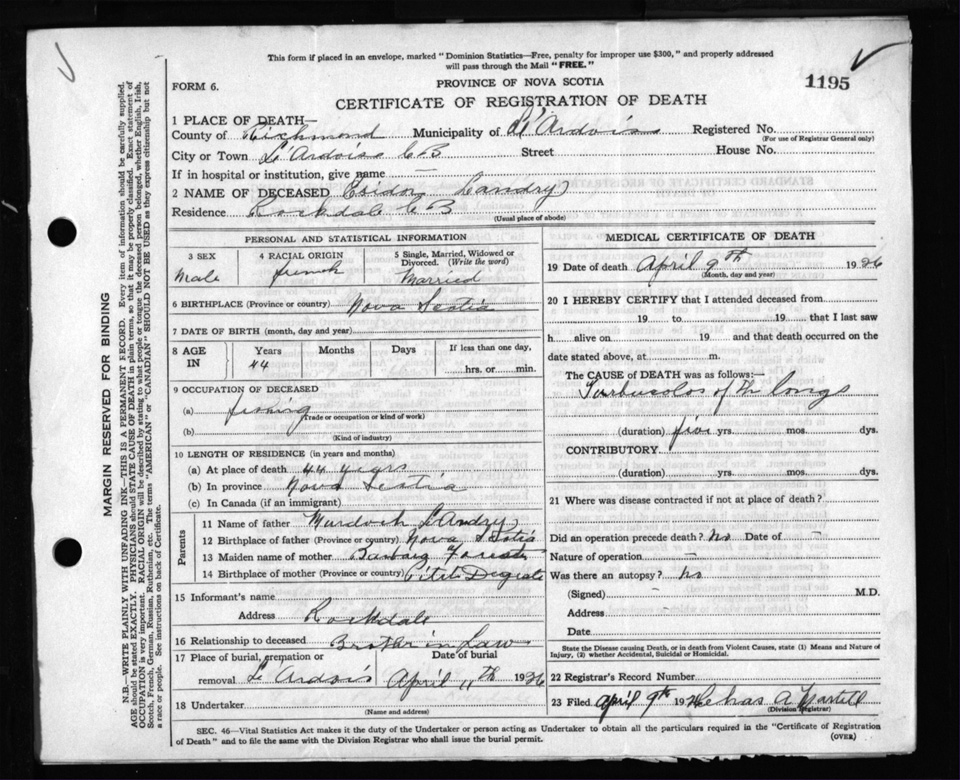 Nova Scotia Archives — https://archives.novascotia.ca/vital-statistics/death/?ID=205176