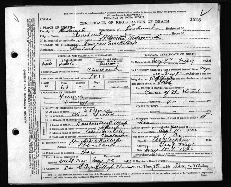 Nova Scotia Archives — https://archives.novascotia.ca/vital-statistics/death/?ID=205196