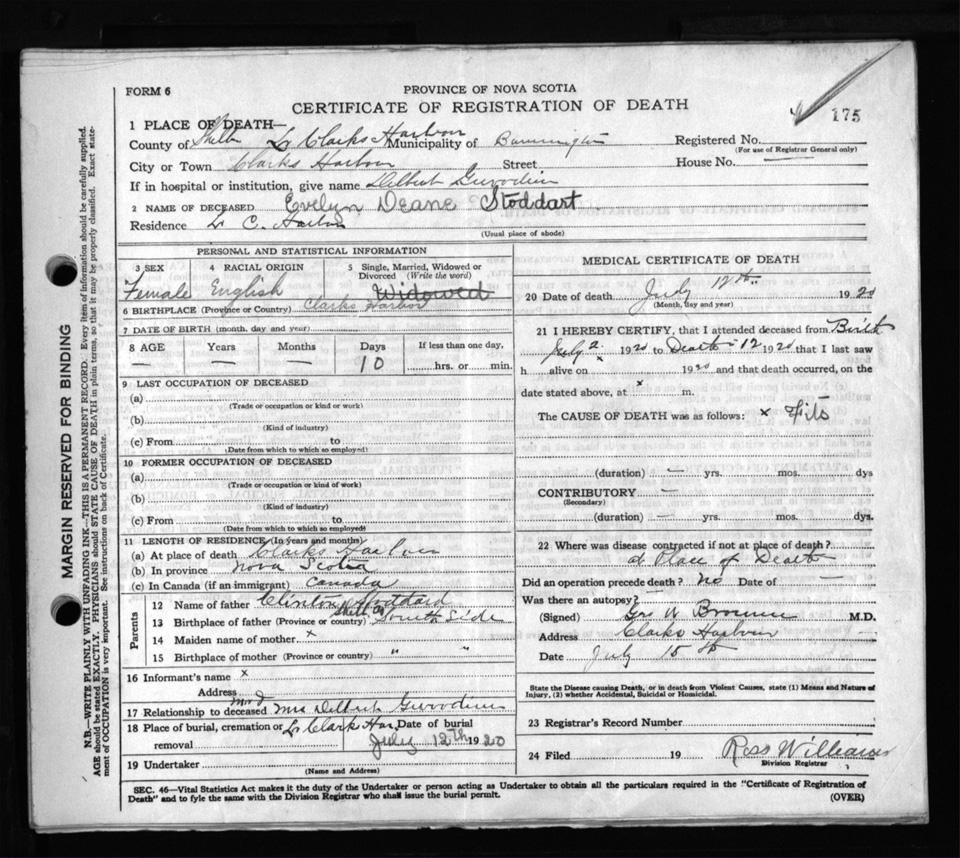 Death Registration: Year: 1920 file: 103 number: 175