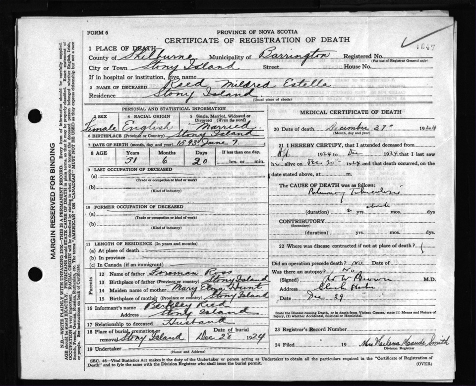 Death Registration: Year: 1924 file: 103 number: 1047