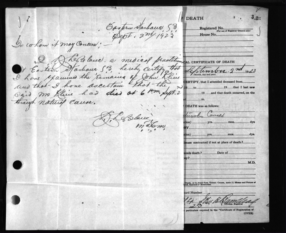 Death Registration: Year: 1923 file: 104 number: 3
