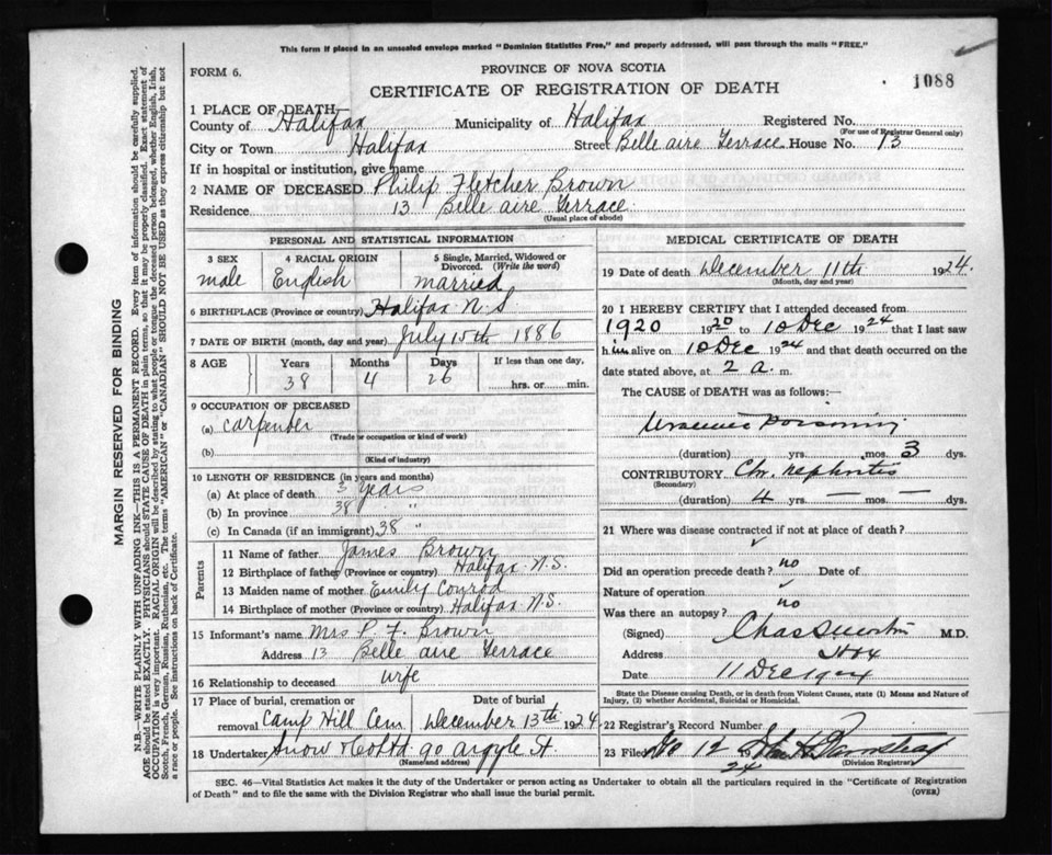 Death Registration: Year: 1924 file: 104 number: 1088