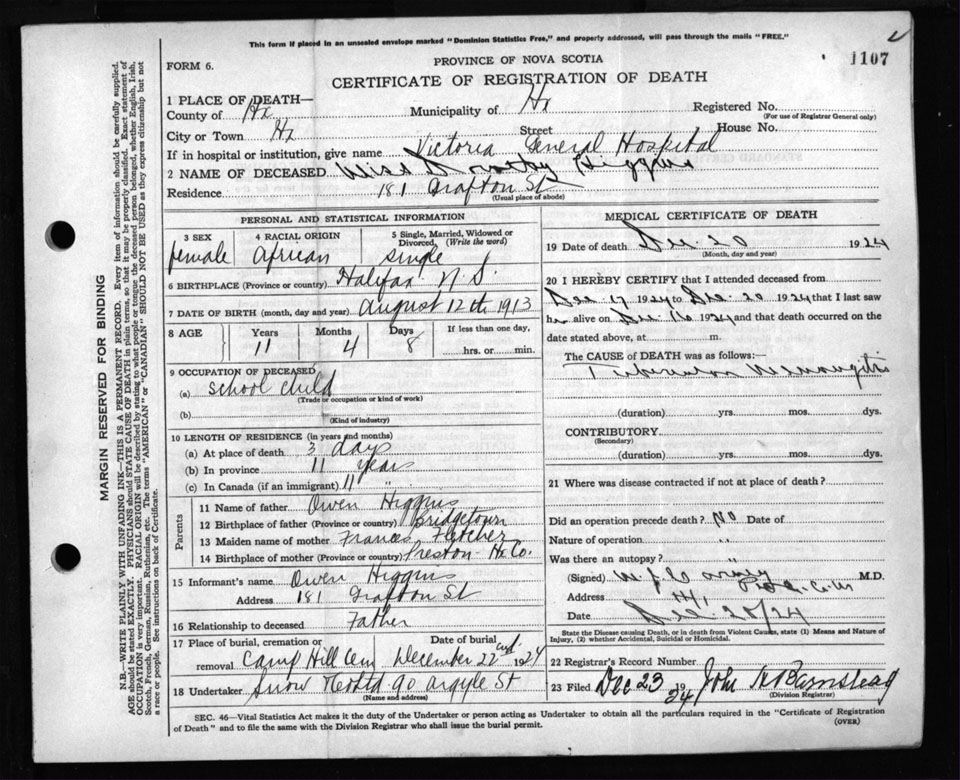 Death Registration: Year: 1924 file: 104 number: 1107