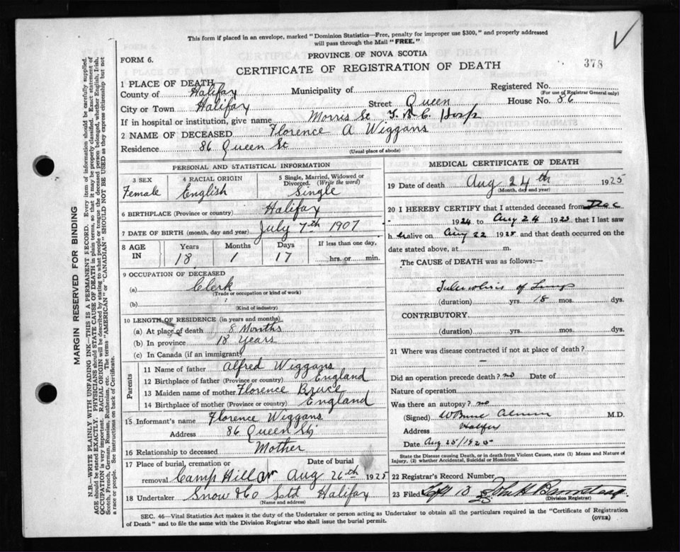 Death Registration: Year: 1925 file: 105 number: 378