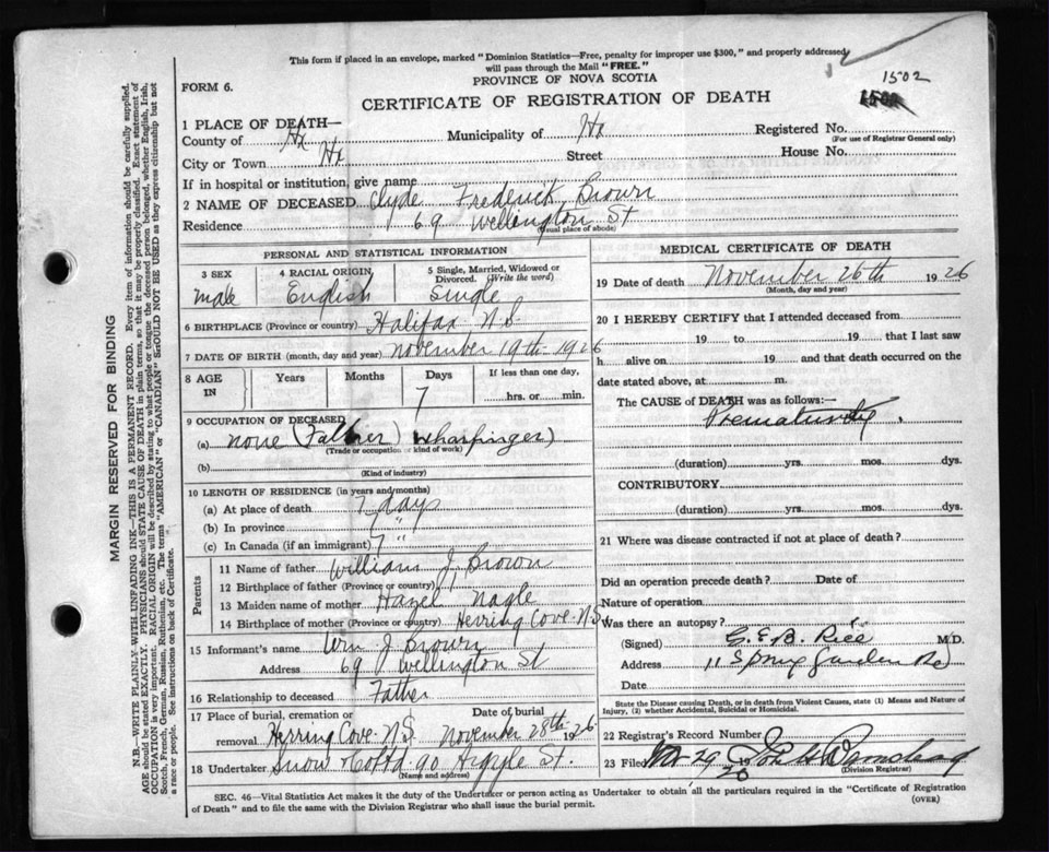 Death Registration: Year: 1926 file: 105 number: 1502