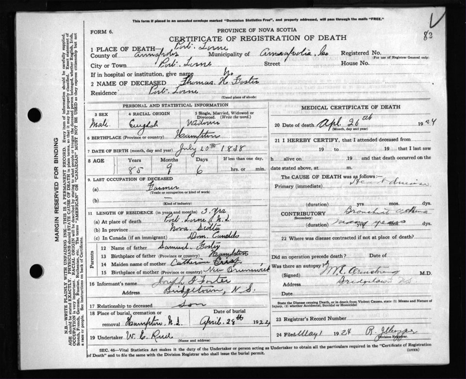 Death Registration: Year: 1924 file: 106 number: 82