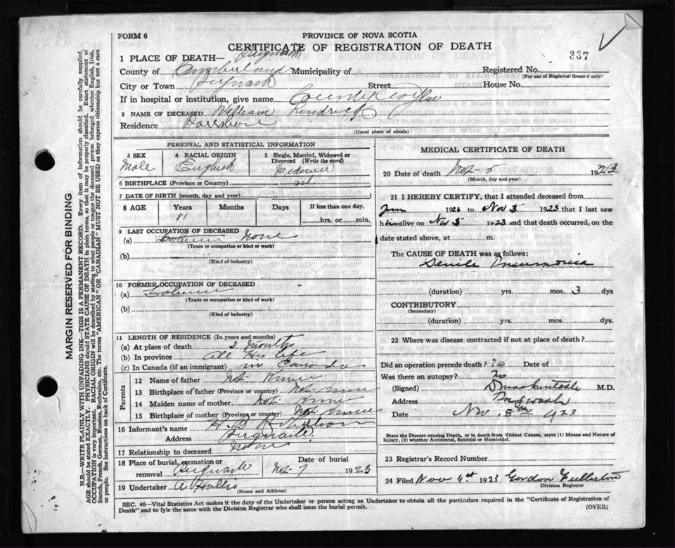 Death Registration: Year: 1923 file: 107 number: 337