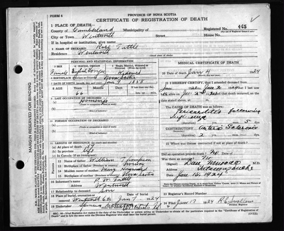 Death Registration: Year: 1924 file: 107 number: 465