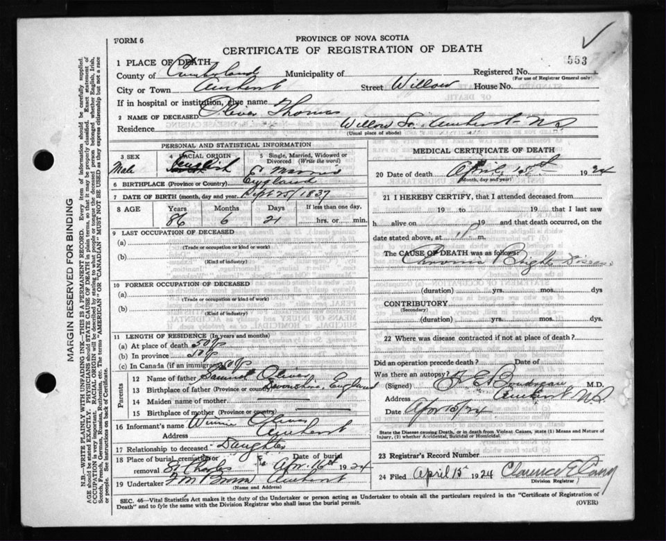 Death Registration: Year: 1924 file: 107 number: 553