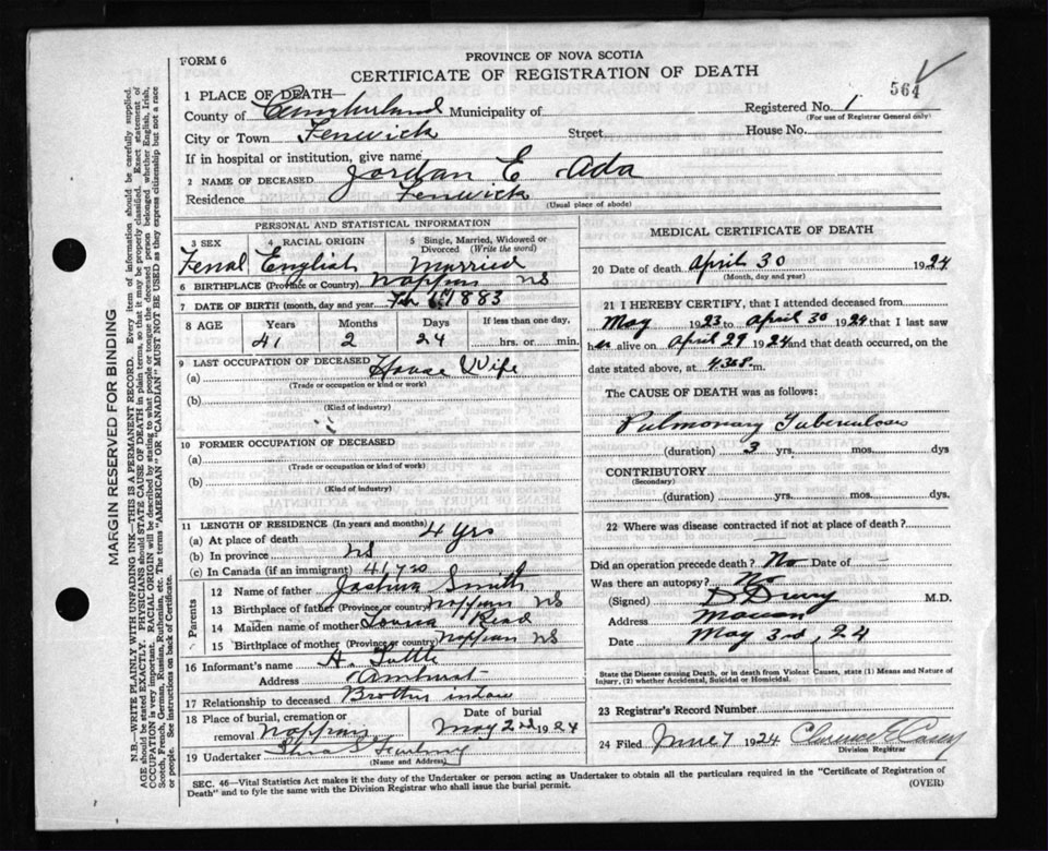 Death Registration: Year: 1924 file: 107 number: 564