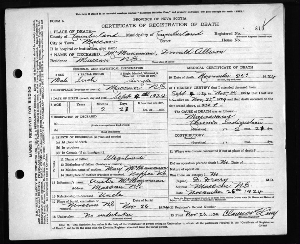 Death Registration: Year: 1924 file: 107 number: 810