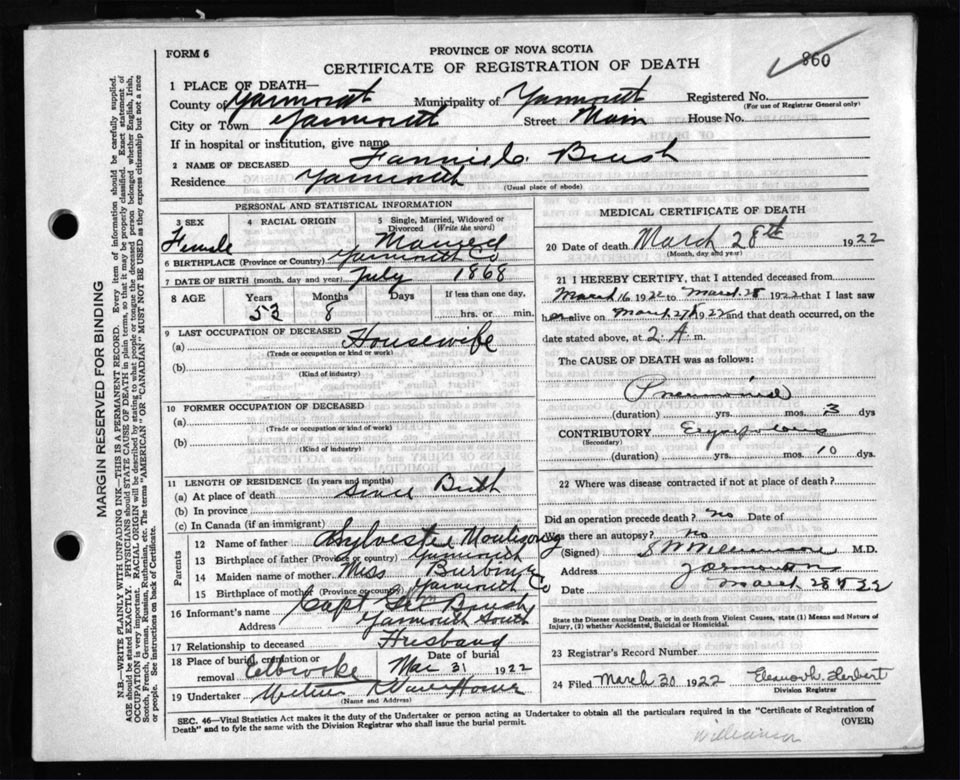 Death Registration: Year: 1922 file: 110 number: 860