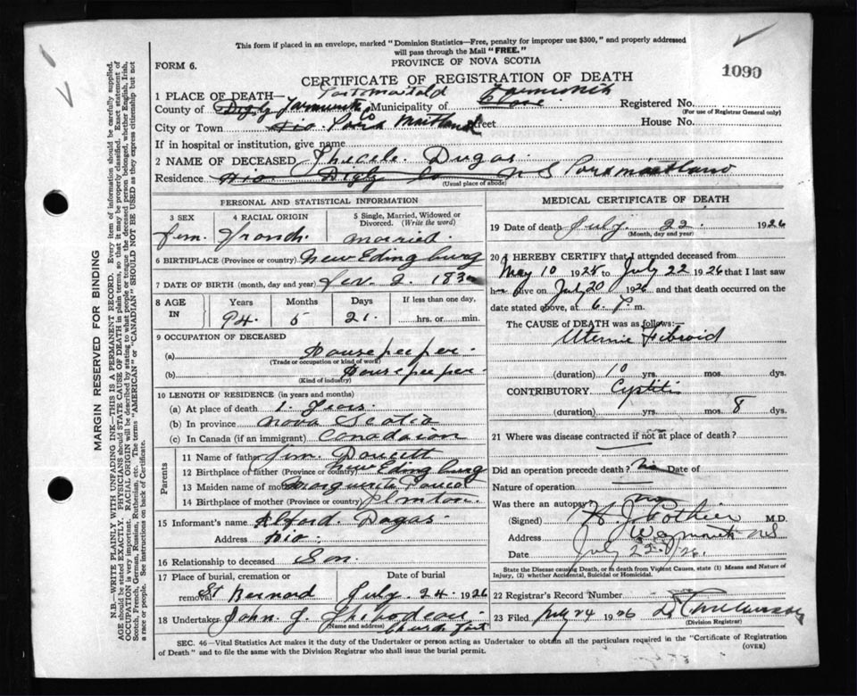 Death Registration: Year: 1926 file: 111 number: 1090