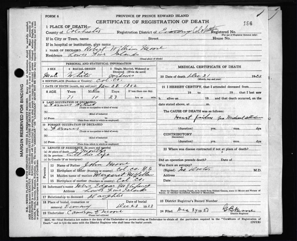 Death Registration: Year: 1923 file: 112 number: 186