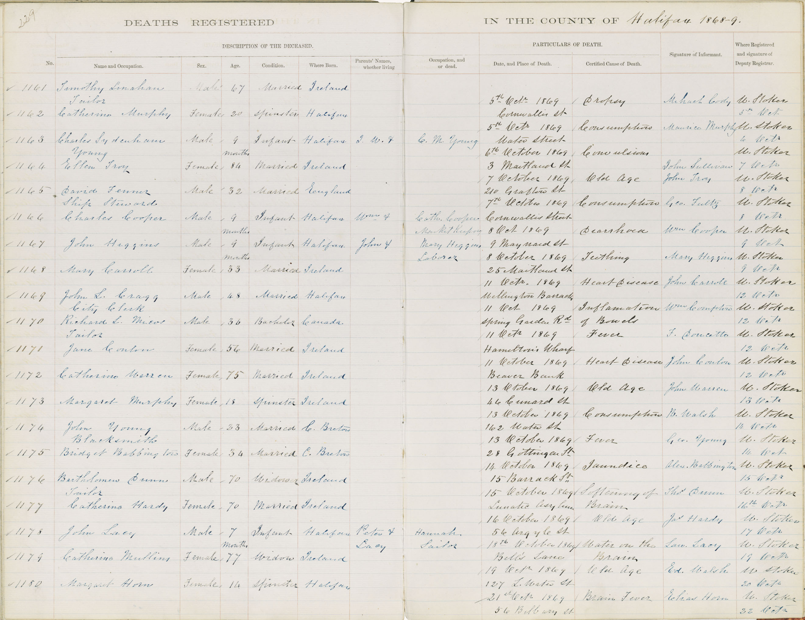 Death Registration: Year: 1869 book: 1808 page: 229 number: 1180
