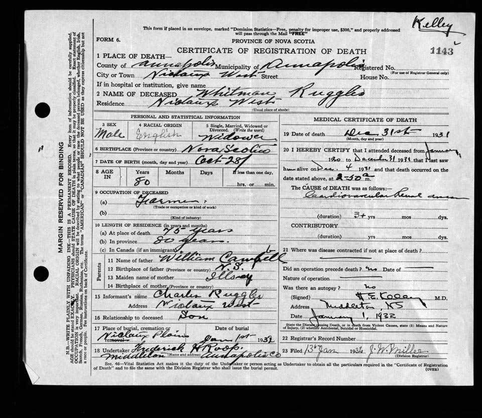 Death Registration: Year: 1931 file: 115 number: 1143