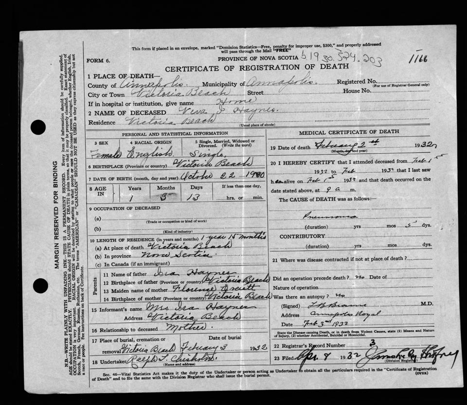 Death Registration: Year: 1932 file: 115 number: 1166