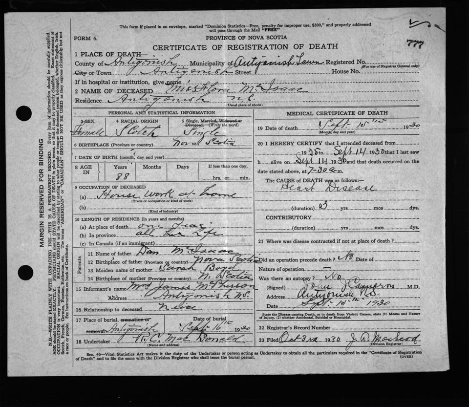 Nova Scotia Archives — https://archives.novascotia.ca/vital-statistics/death/?ID=218509