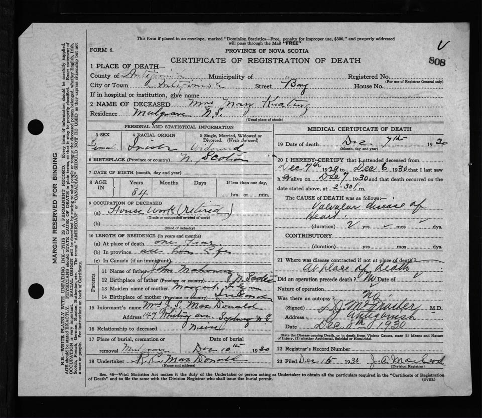 Nova Scotia Archives — https://archives.novascotia.ca/vital-statistics/death/?ID=218540