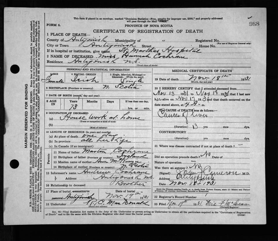 Nova Scotia Archives — https://archives.novascotia.ca/vital-statistics/death/?ID=218720