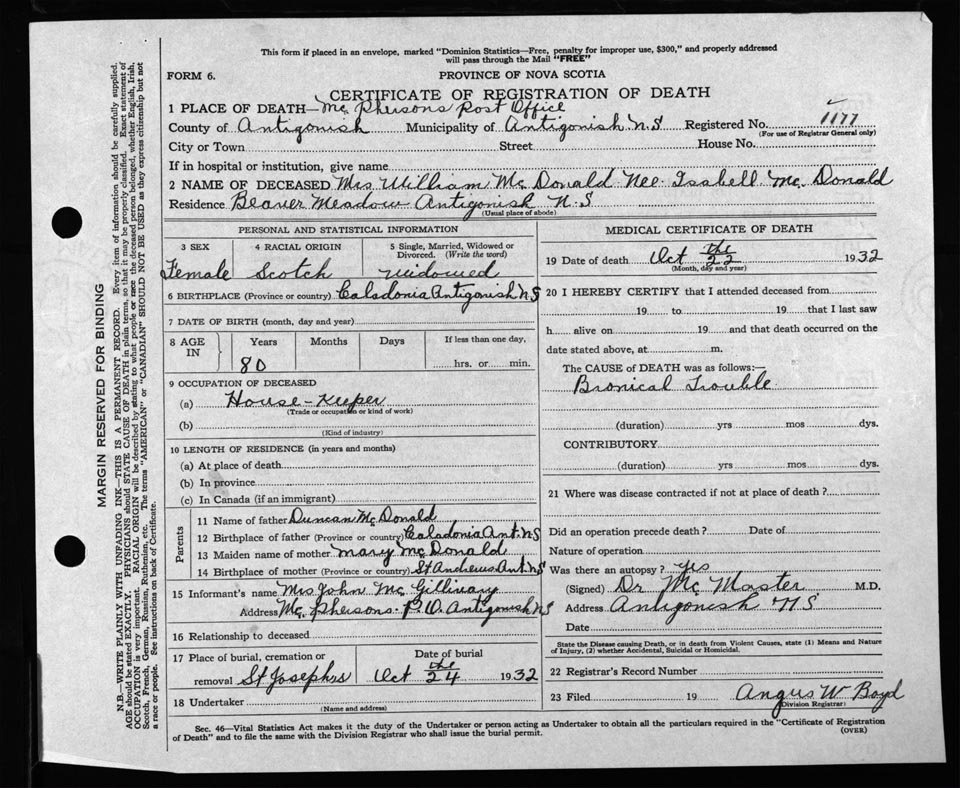 Nova Scotia Archives — https://archives.novascotia.ca/vital-statistics/death/?ID=218909