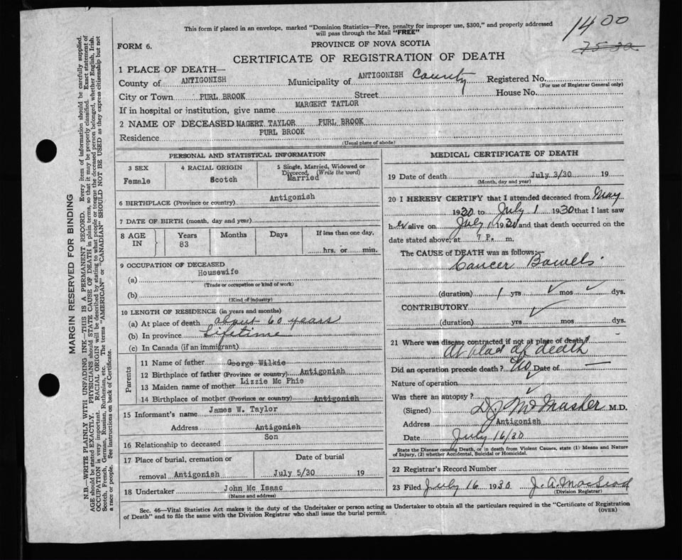 Nova Scotia Archives — https://archives.novascotia.ca/vital-statistics/death/?ID=219131