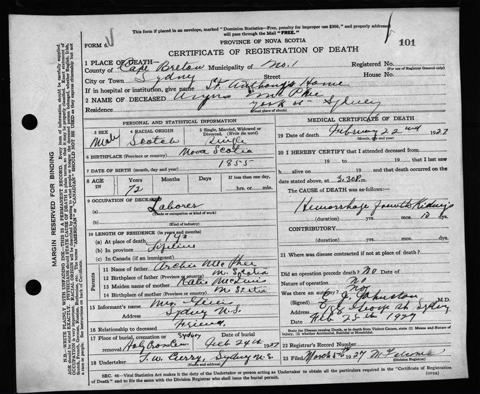 Nova Scotia Archives — https://archives.novascotia.ca/vital-statistics/death/?ID=219244