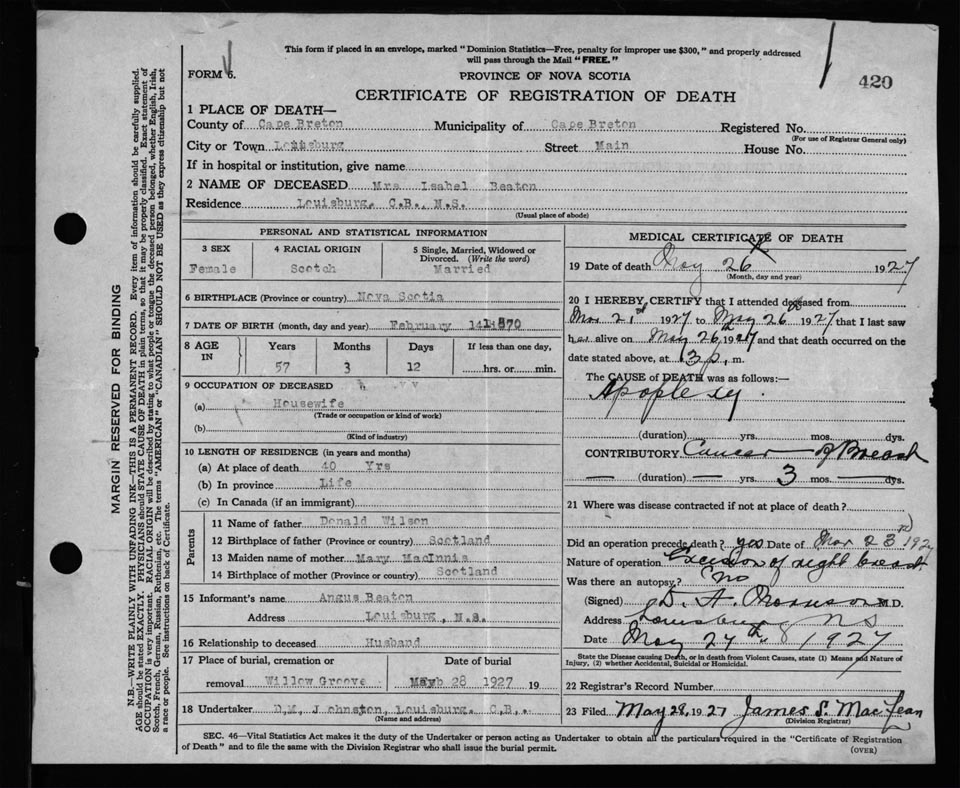 Nova Scotia Archives — https://archives.novascotia.ca/vital-statistics/death/?ID=219565