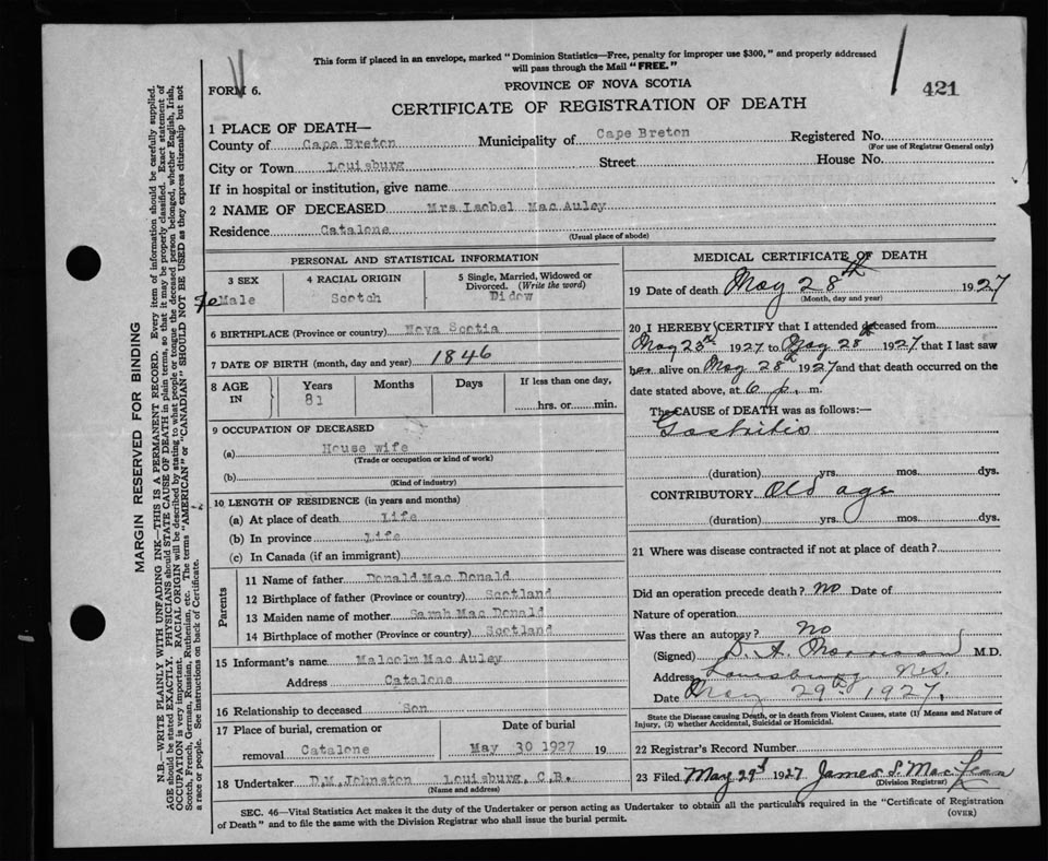 Nova Scotia Archives — https://archives.novascotia.ca/vital-statistics/death/?ID=219566