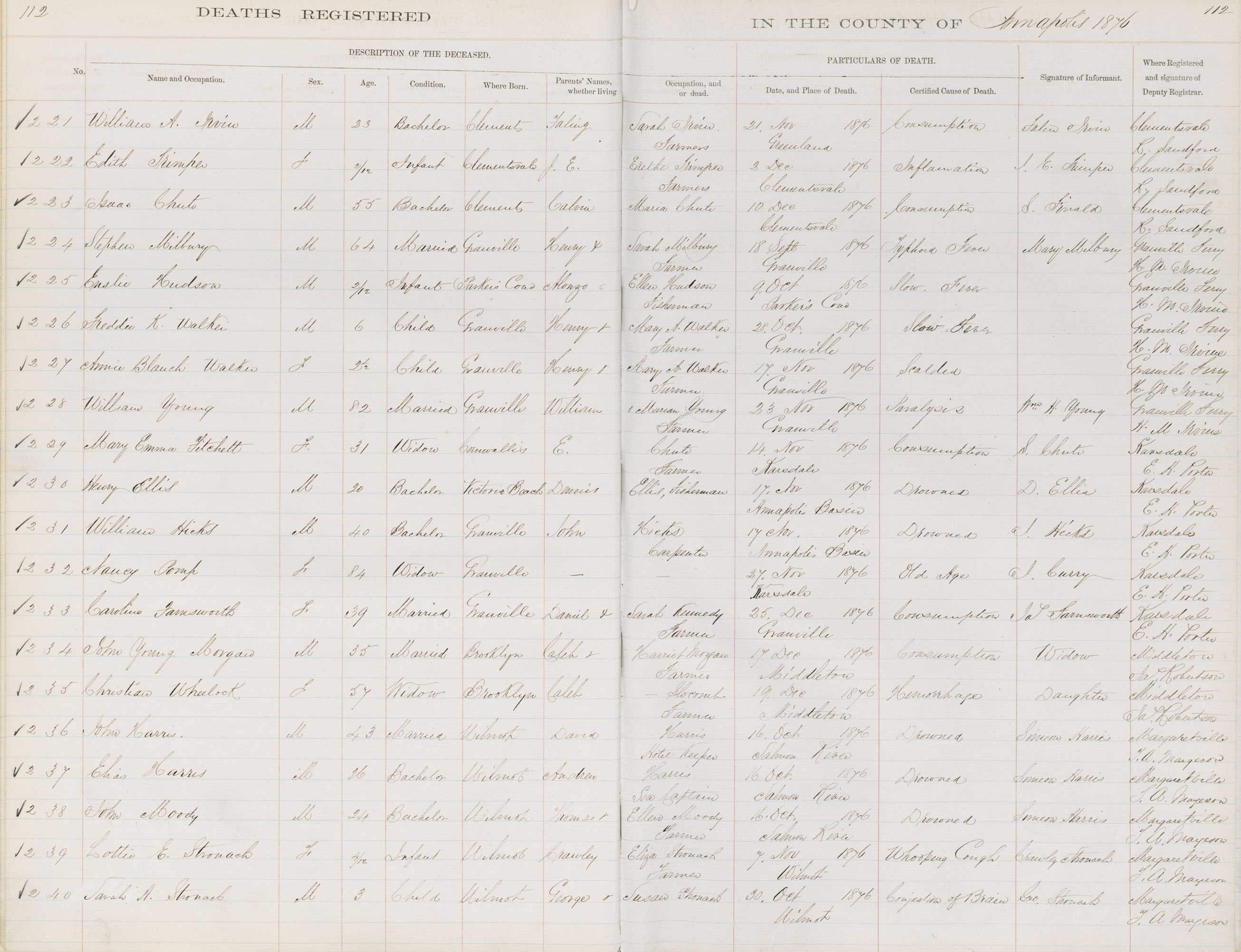 Death Registration: Year: 1876 book: 1801 page: 112 number: 228