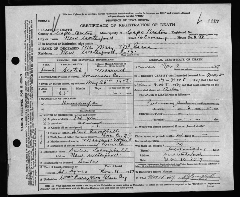 Nova Scotia Archives — https://archives.novascotia.ca/vital-statistics/death/?ID=220265