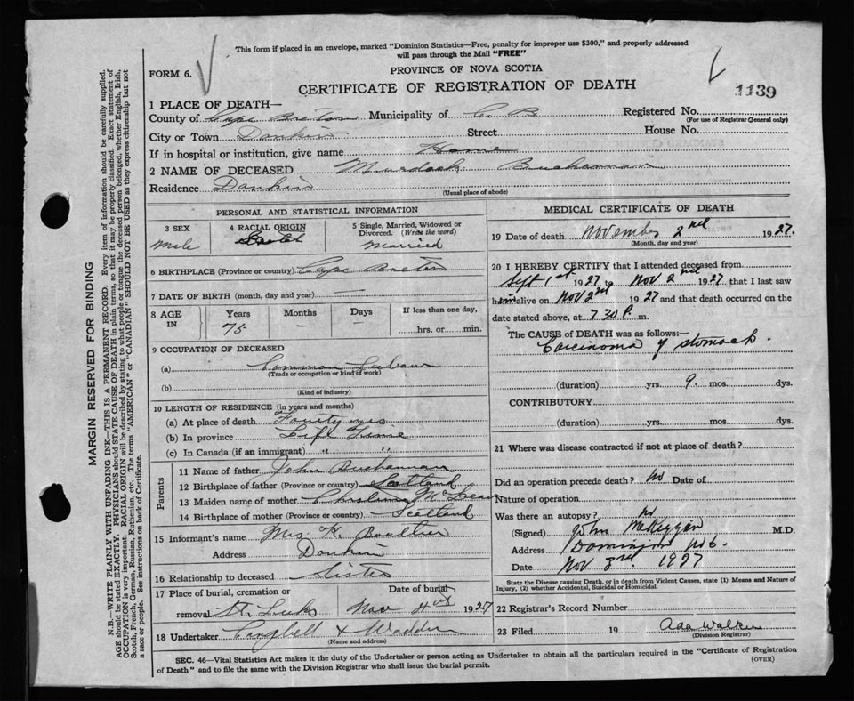 Nova Scotia Archives — https://archives.novascotia.ca/vital-statistics/death/?ID=220288