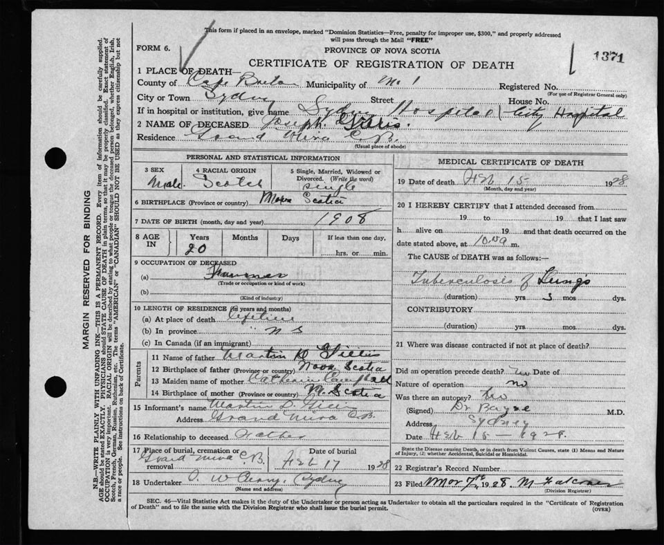Male Death Registration: Year: 1928 file: 117 number: 1371