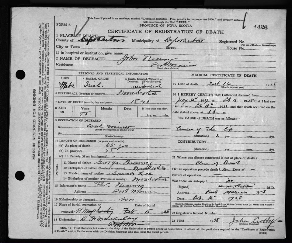 Nova Scotia Archives — https://archives.novascotia.ca/vital-statistics/death/?ID=220576