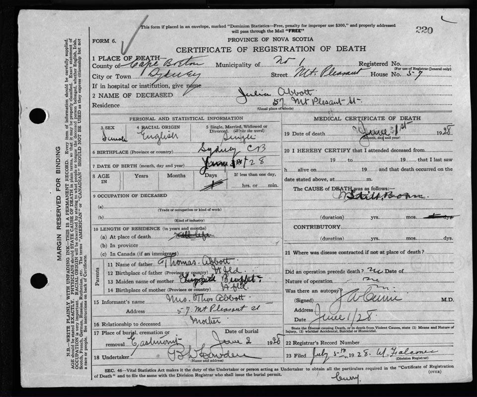 Nova Scotia Archives — https://archives.novascotia.ca/vital-statistics/death/?ID=220951