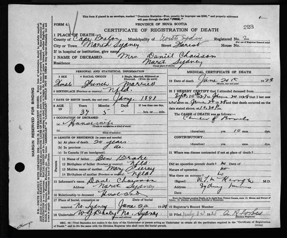 Nova Scotia Archives — https://archives.novascotia.ca/vital-statistics/death/?ID=220959
