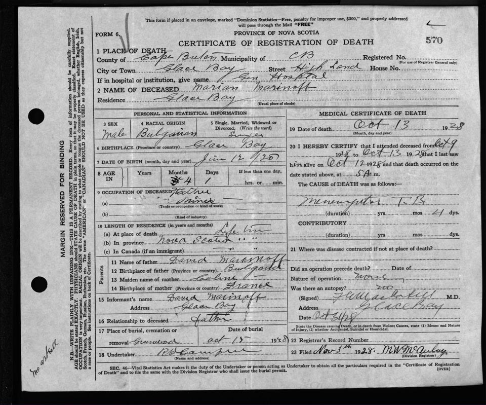 Male Death Registration: Year: 1928 file: 118 number: 570