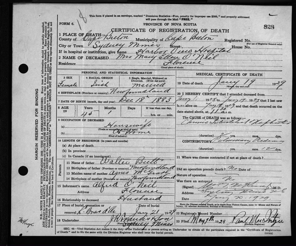Female Death Registration: Year: 1929 file: 118 number: 828